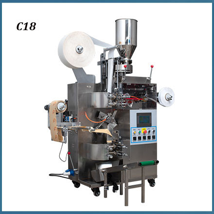 C18 Tea bag filling and sealing machine is suitable for inner bag and outer envelope, and for packing small granular products such as tea leaf, medicinal tea and health care tea.